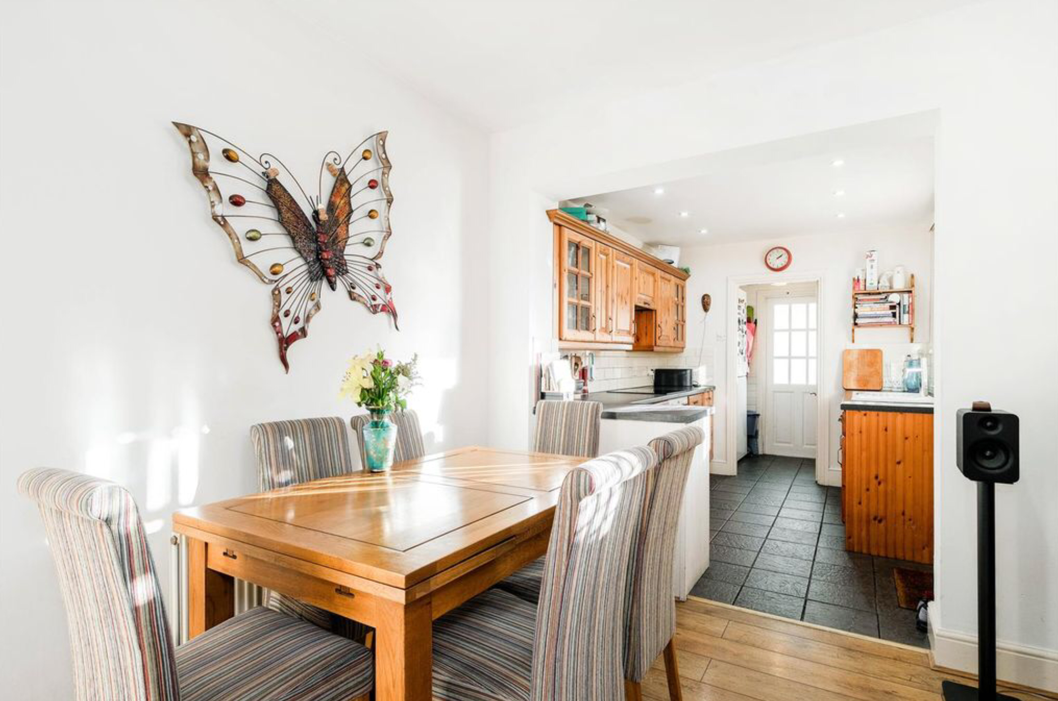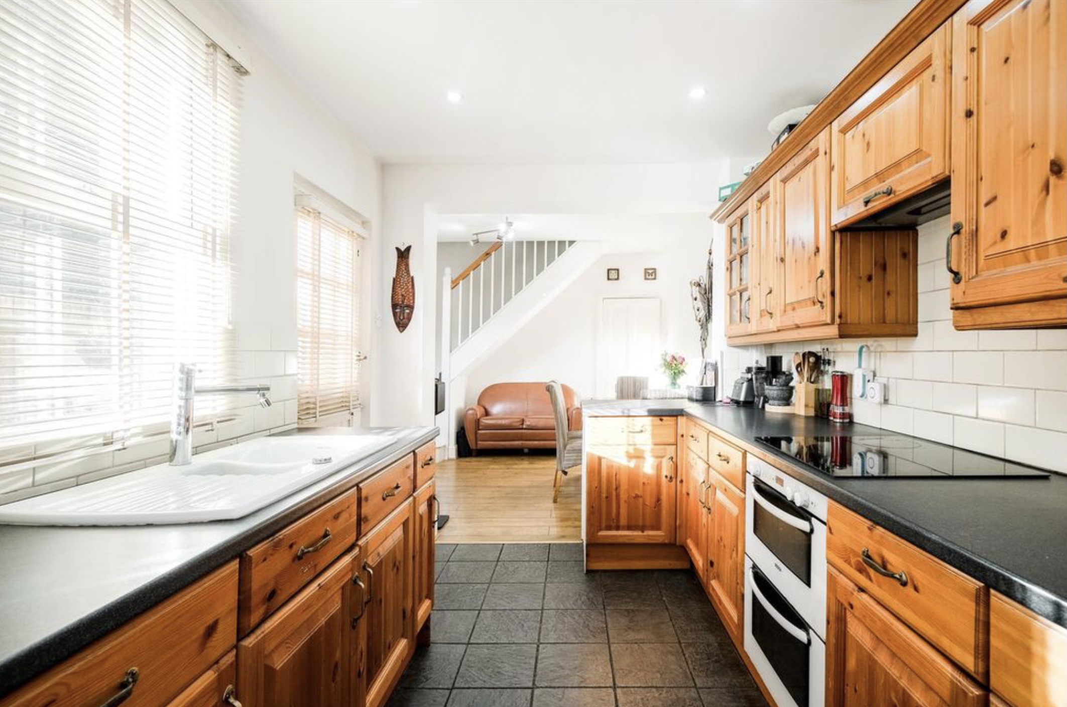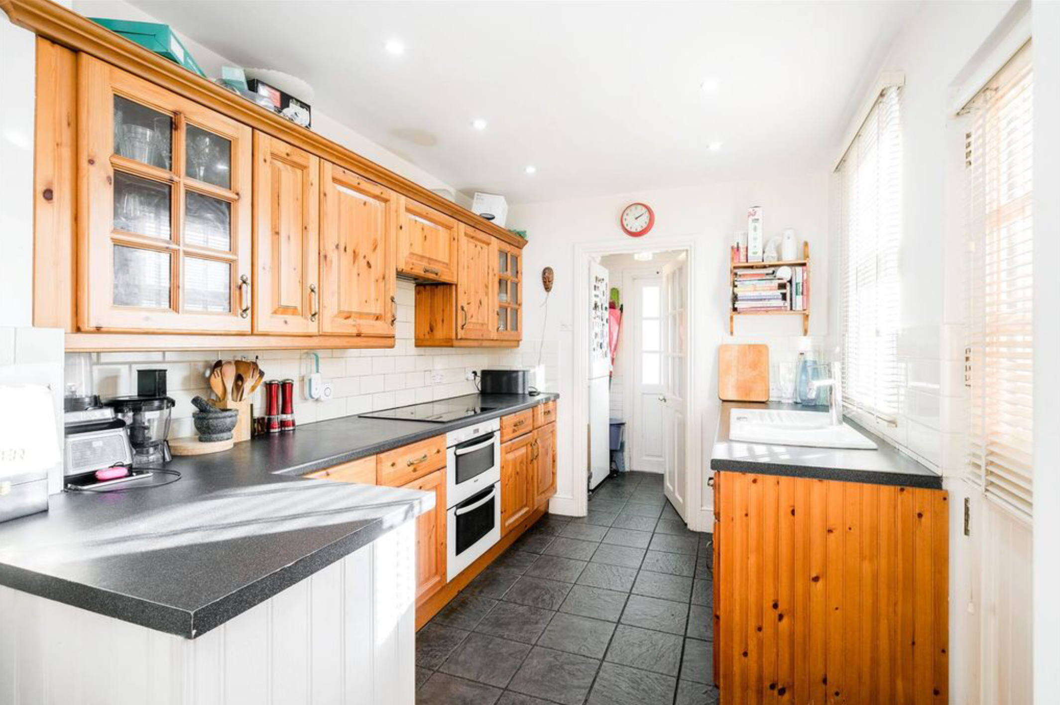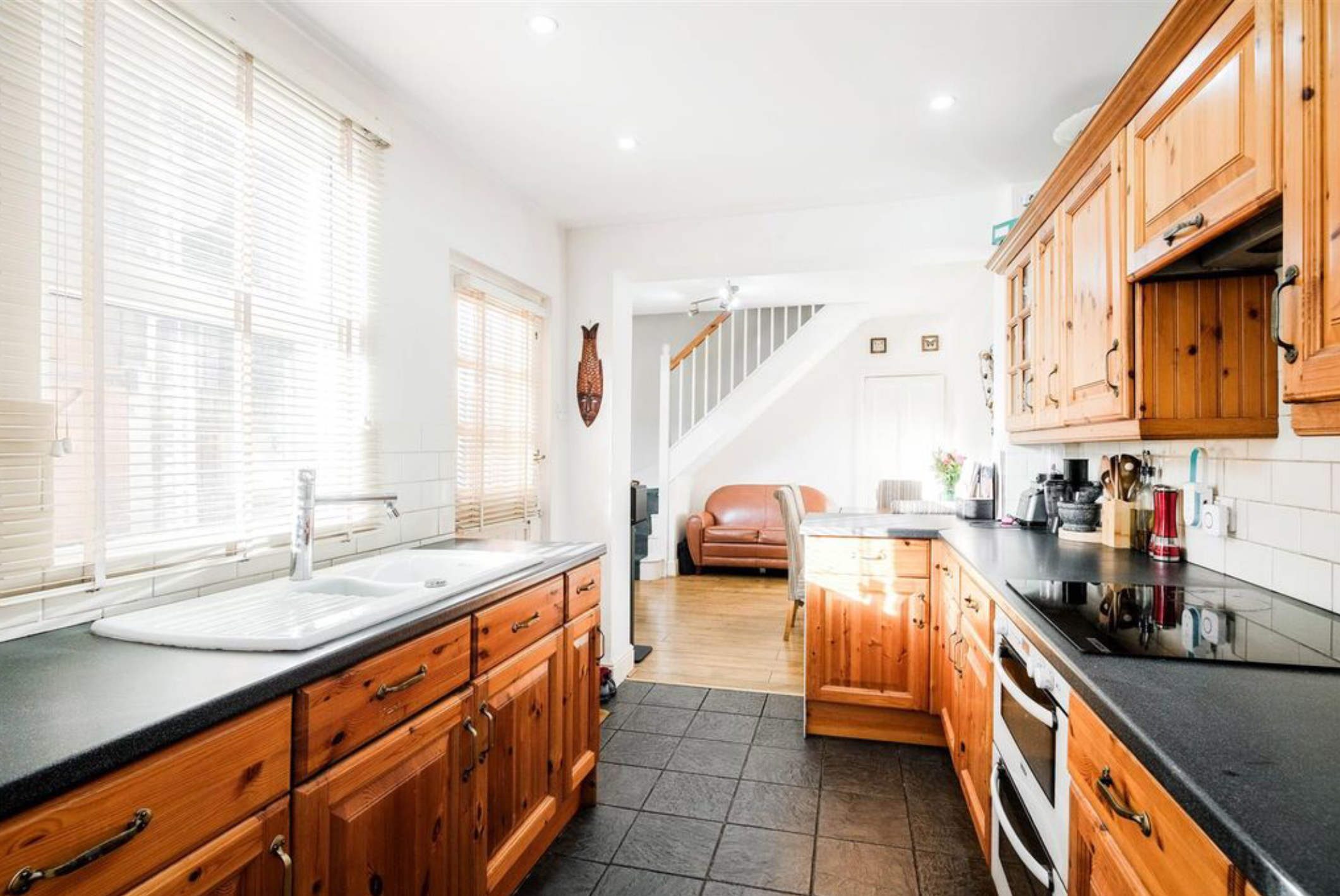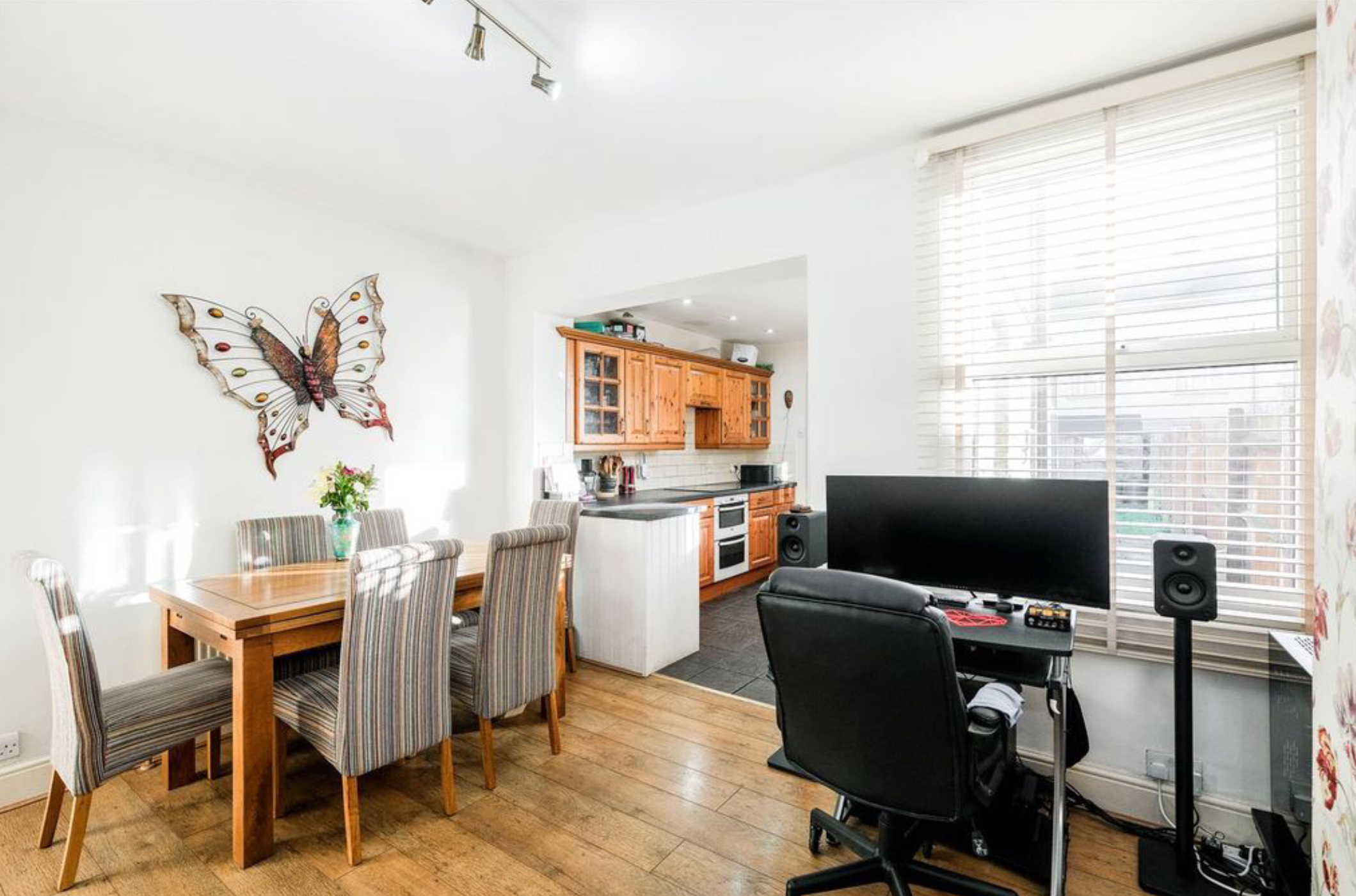 Heading on you’ll find the second reception room/dining room and a modern galley-style kitchen, where culinary delights are crafted amidst sleek, contemporary design.