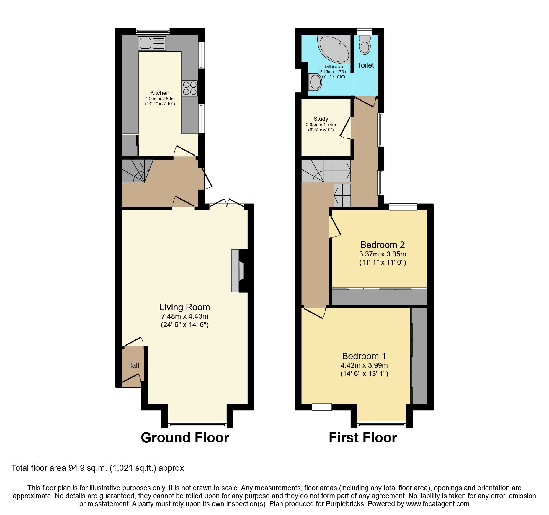 The property comprises two generously sized double bedrooms, both with fitted wardrobes, providing ample storage space. A separate study/office on the first floor provides a quiet and private workspace, ideal for working from home.