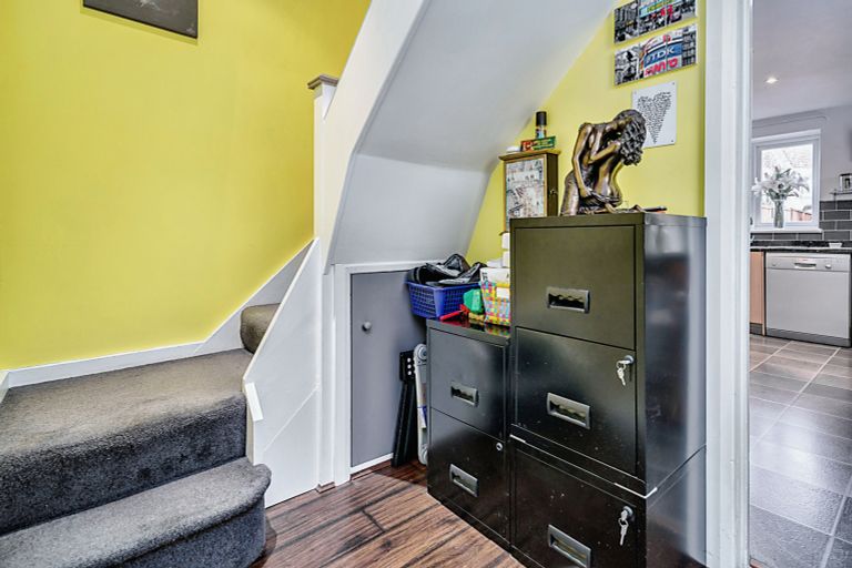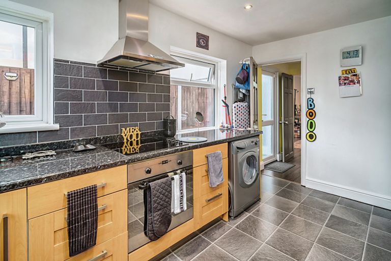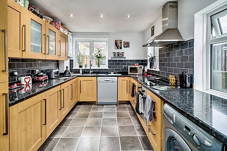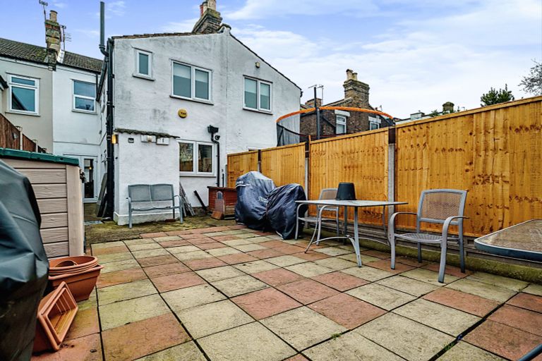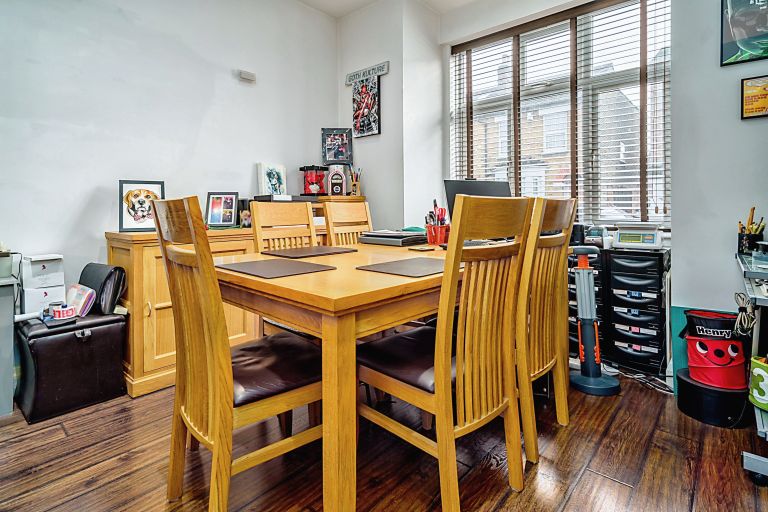 The private rear garden offers a tranquil outdoor space to relax and unwind, complete with an additional WC for added convenience. Garden access is available via the kitchen or reception room.